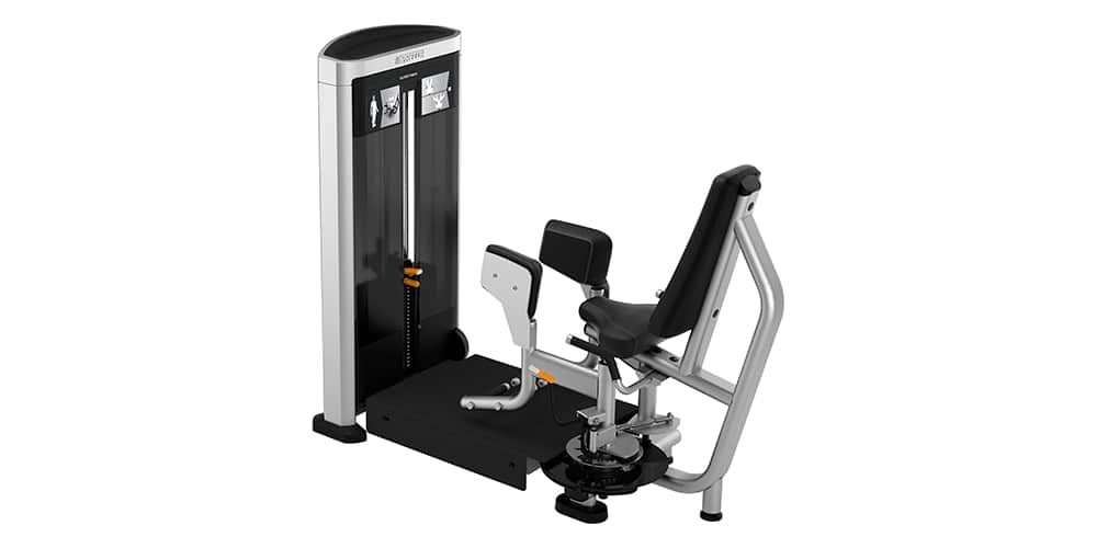 The Resolute™ Strength Outer Thigh targets the hip abductor muscles, more commonly known as the glutes. Exercisers face the shrouded weight stack for privacy. The easy-to-operate adjustable start position allows easy entry and exit from the equipment.